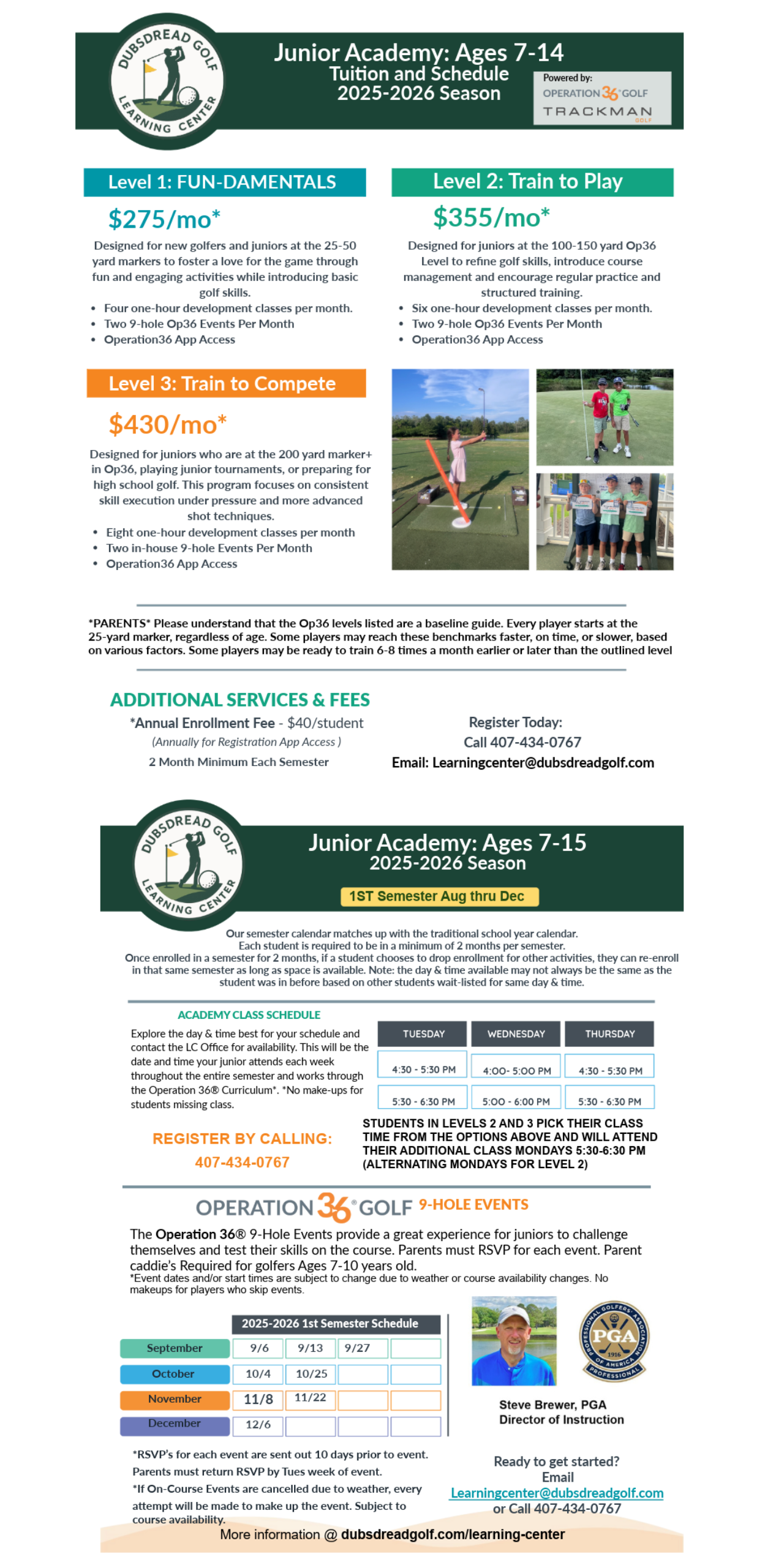 To register, or if you have any questions, call the Learning Center at 407.434.0767 or email learningcenter@dubsdreadgolf.com.
